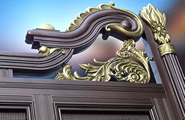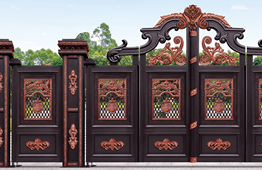別墅庭院大門(mén)材質(zhì)選用高端硬鋁合金型材,以及整體實(shí)心鑄鋁花件,純手工拼接制作而成。